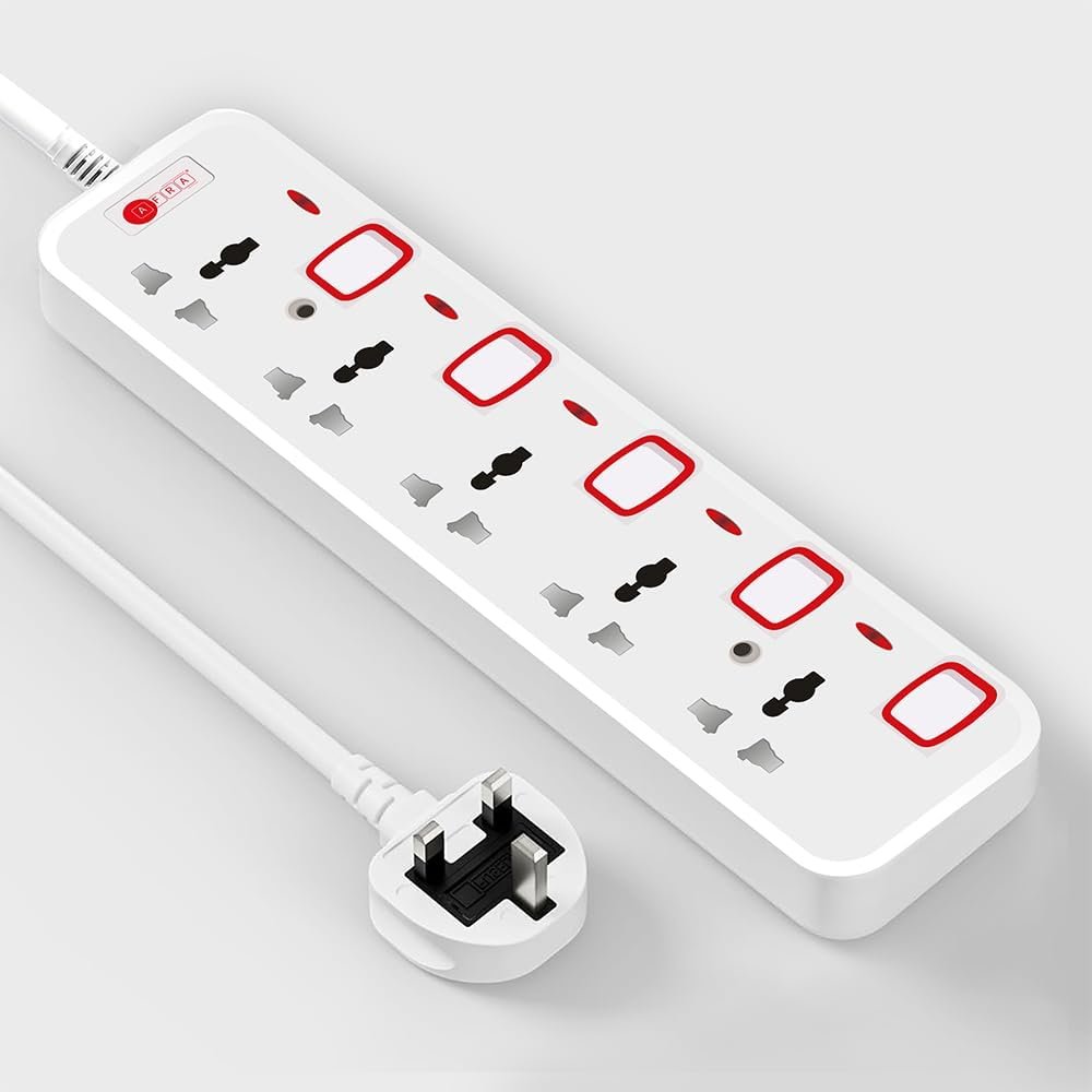 AFRA Extension Cord | 5 Meter Cable | 4 Universal Sockets | Shockproof | 250V | AF-004EXRD-5MT