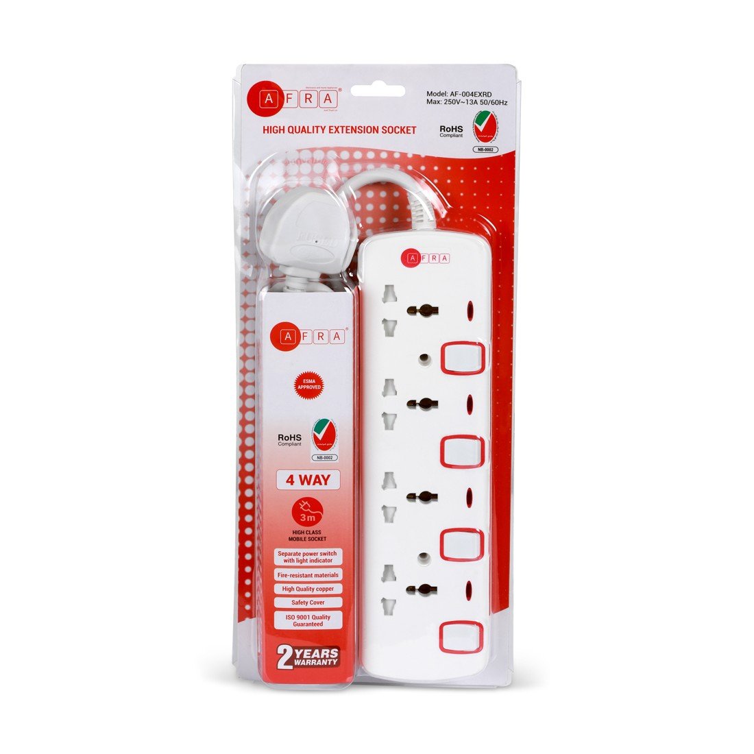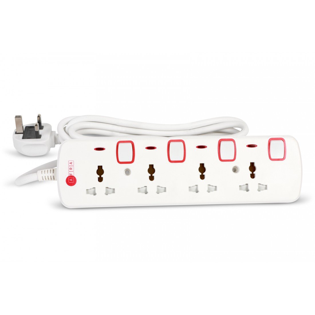 AFRA Universal Extension Cord AF-004EXRD – 4-Way, 3M Cable, 250V, Shock-Proof, Japan Standard