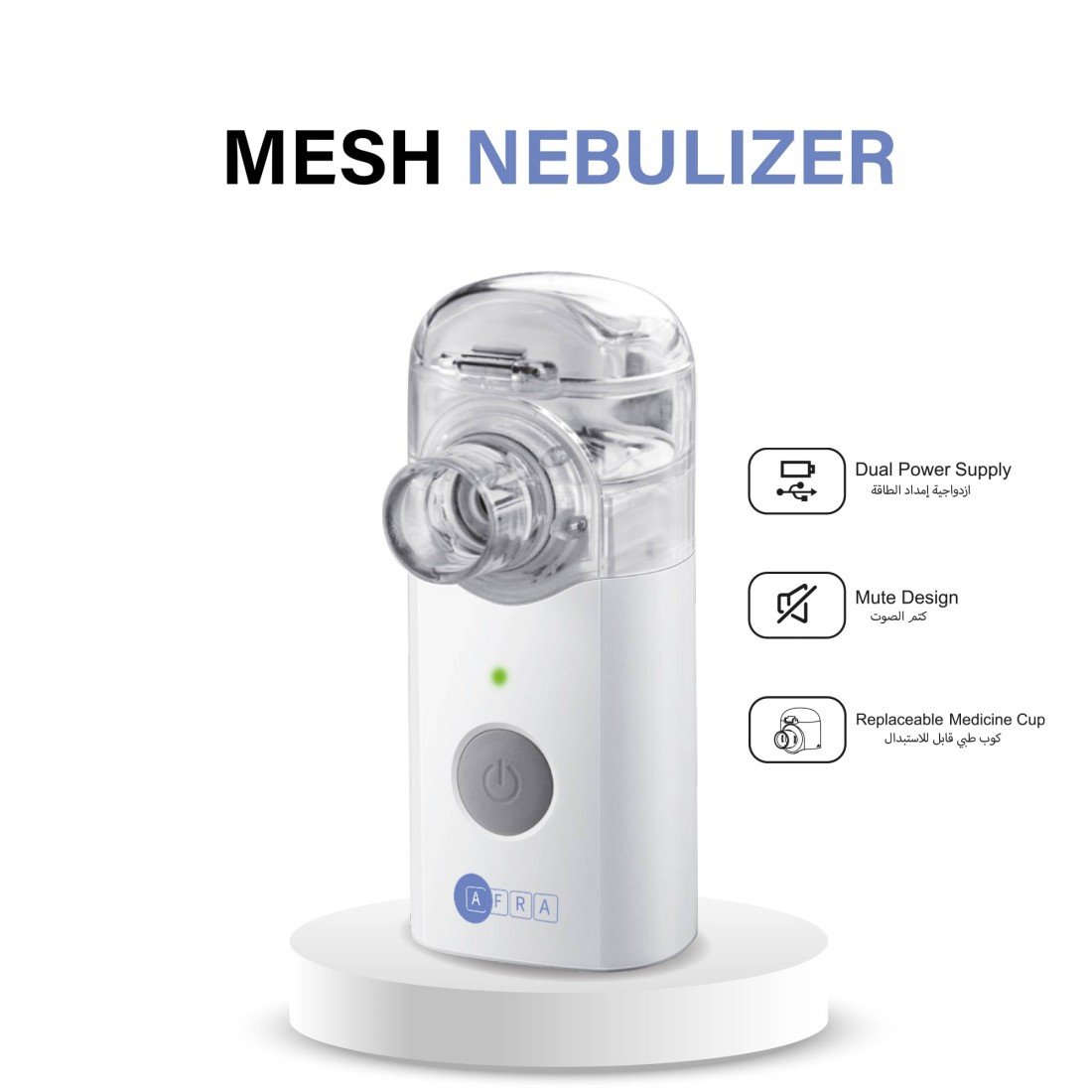 AFRA Mesh Nebulizer | White | Battery Operated | Portable & Silent | With Accessories | AF-401MN