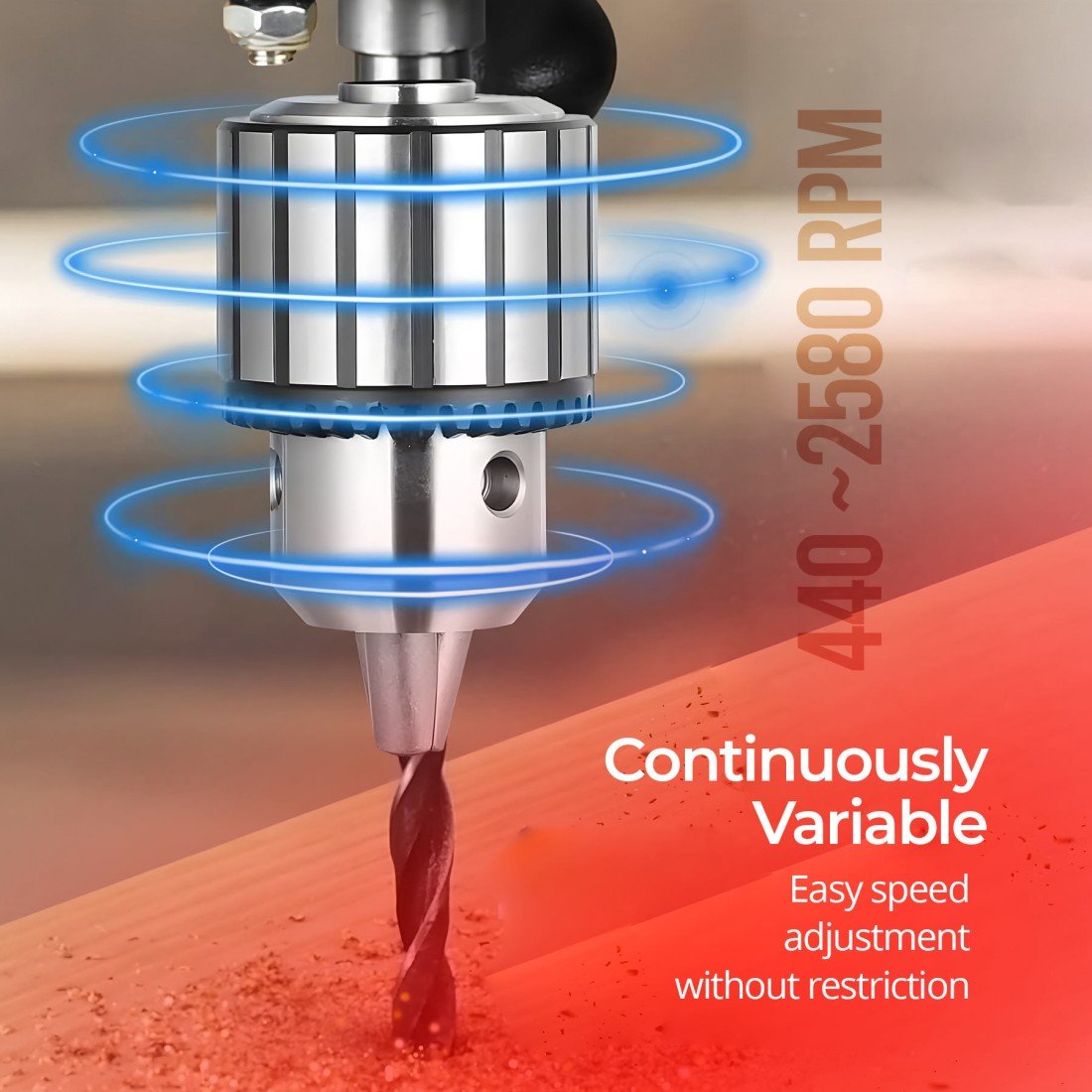 With mechanical speed adjustment ranging from 440 to 2580 RPM, this drill press offers flexibility for different drilling tasks. Built for precision and endurance, it’s an ideal choice for craftspeople, technicians, and DIY enthusiasts. Backed by AFRA’s 1-year warranty for reliable performance.