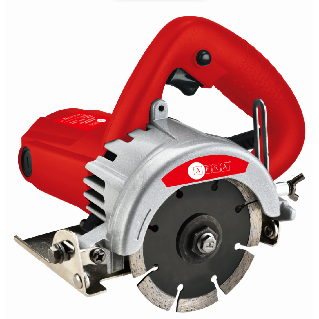 AFRA 1480W marble cutter with 110mm blade, 12000 RPM speed, ergonomic grip & adjustable cutting depth.