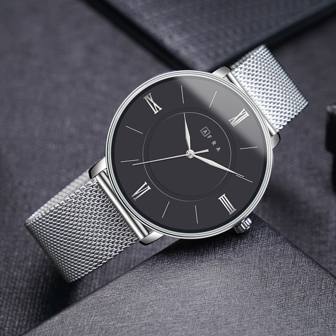 Discover elevated elegance with the AFRA Ambrose Gents Watch | Model AF10902, designed for men who appreciate minimalism, functionality, and sophisticated style. Featuring a polished silver stainless steel case, bold black dial, and a sleek silver mesh bracelet, this timepiece offers a refined look perfect for modern professionals.