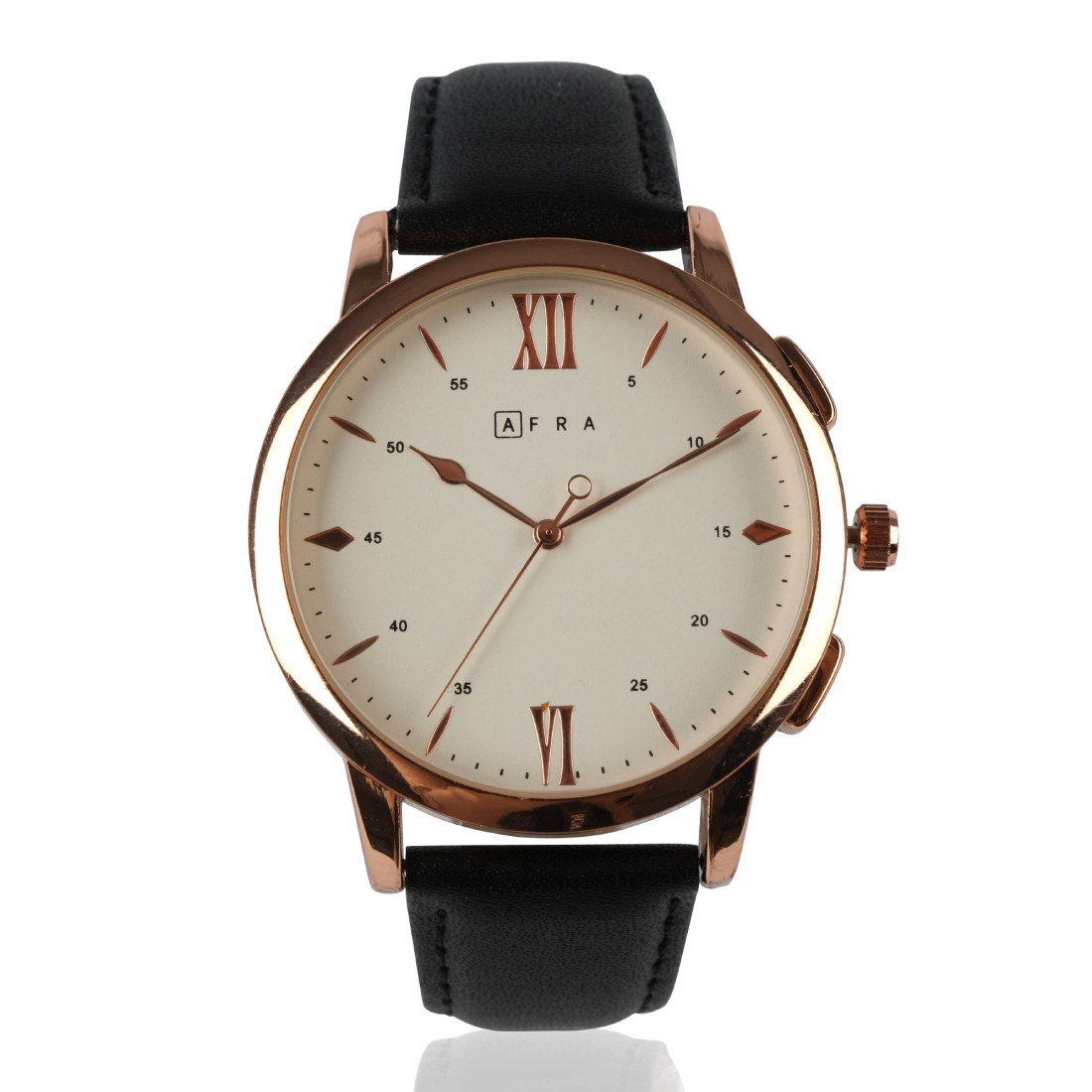 Add a touch of elegance to your wrist with the AFRA Dazzler Gents Watch AF10301. Featuring a luxurious rose gold case and a crisp white dial, this timepiece combines classic sophistication with modern style. The sleek black leather strap offers both comfort and durability, making it perfect for everyday wear or special occasions. Powered by precise quartz movement and backed by a 1-year warranty, the Dazzler ensures reliability and timeless appeal. Water resistant to 30 meters, it’s built to keep up with your lifestyle.