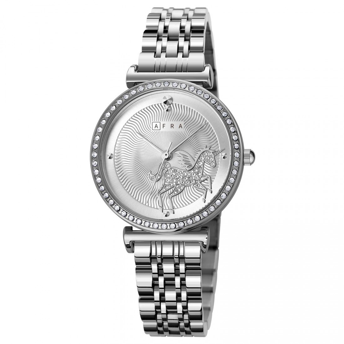 The AFRA Keren Ladies Watch AF21001 blends classic sophistication with modern durability. Crafted with a sleek silver-tone metal alloy case and a matching silver bracelet strap, this timepiece is both stylish and versatile. Its minimalist design is enhanced by reliable quartz movement and 30 meters of water resistance, making it a practical accessory for everyday wear. Backed by a 1-year warranty, the AF21001 is an excellent choice for women who seek a balance of fashion and function in a timeless wristwatch.