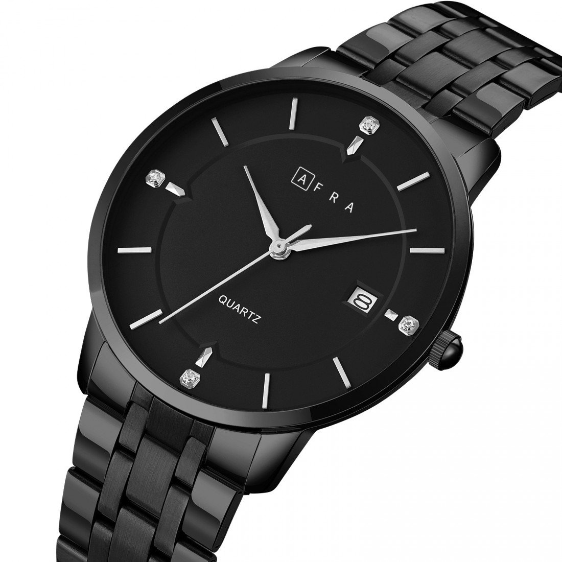 The AFRA Ryker Gents Watch | Model AF11302 is the ultimate expression of bold, modern masculinity. Designed with an all-black aesthetic, this timepiece features a sleek black stainless steel case, deep black dial, and a matching black stainless steel bracelet, offering a cohesive and powerful look.